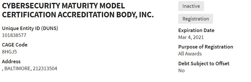 The lapse in SAM.gov registration is particularly embarrassing, given the role that CMMC-AB will eventually have in managing the certifications of hundreds of thousands of defense contractors. Updating a SAM.gov entry is not a particularly difficult task.