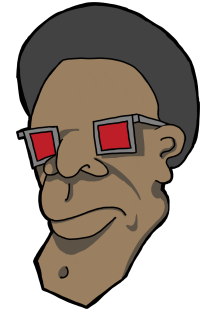 He is usually seen wearing red goggles to protect him from the lasers used in his manufacturing area; Ray mistakes these for “stupid sunglasses.”