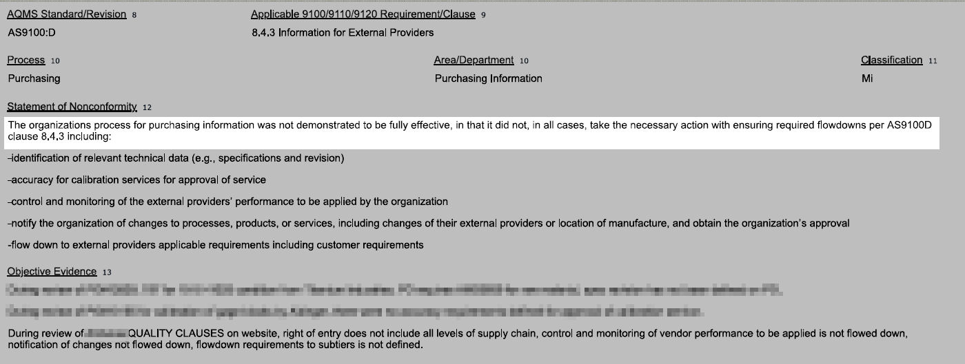 In each case, the auditor demanded that every single bullet point from 8.4.3 be included on every single PO sent to every single supplier. They just want to see the clause copied-and-pasted onto POs, because they think that is how quality management works.