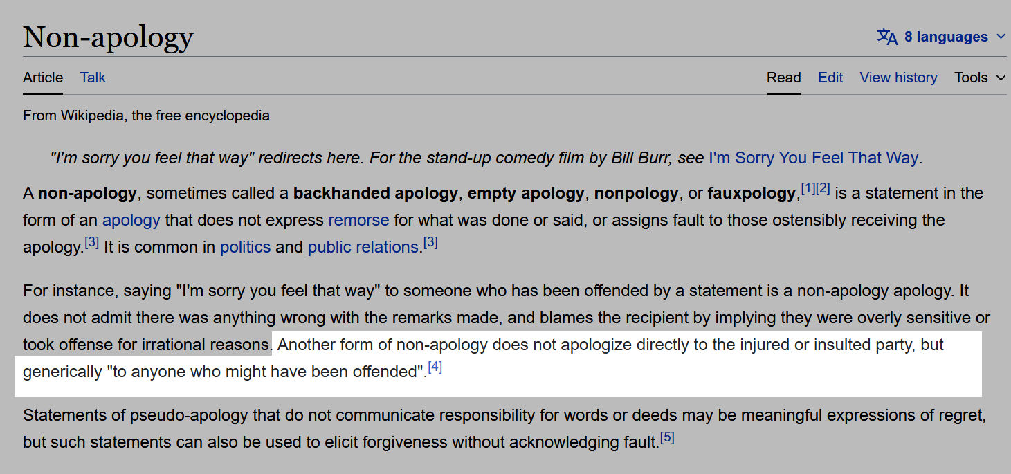 That’s what is called a non-apology apology. I know this because everyone knows it, to the point that it even has its own page on Wikipedia: