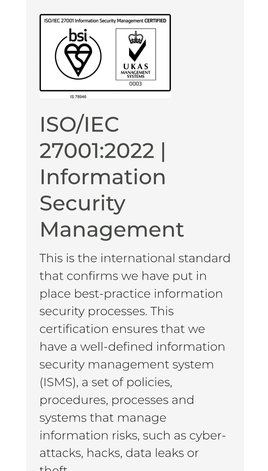 BSI and UKAS likewise make bold, unsubstantiated claims about cybersecurity-related ISO certifications. On its website, BSI claims ISO 27001 certification will “safeguard personal records and sensitive data to prevent breaches and unauthorized access” and “show a commitment to information security, enhancing trust and confidence.”