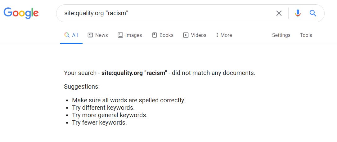 Meanwhile, a search of the entire CQI website related to racism comes up with this result: