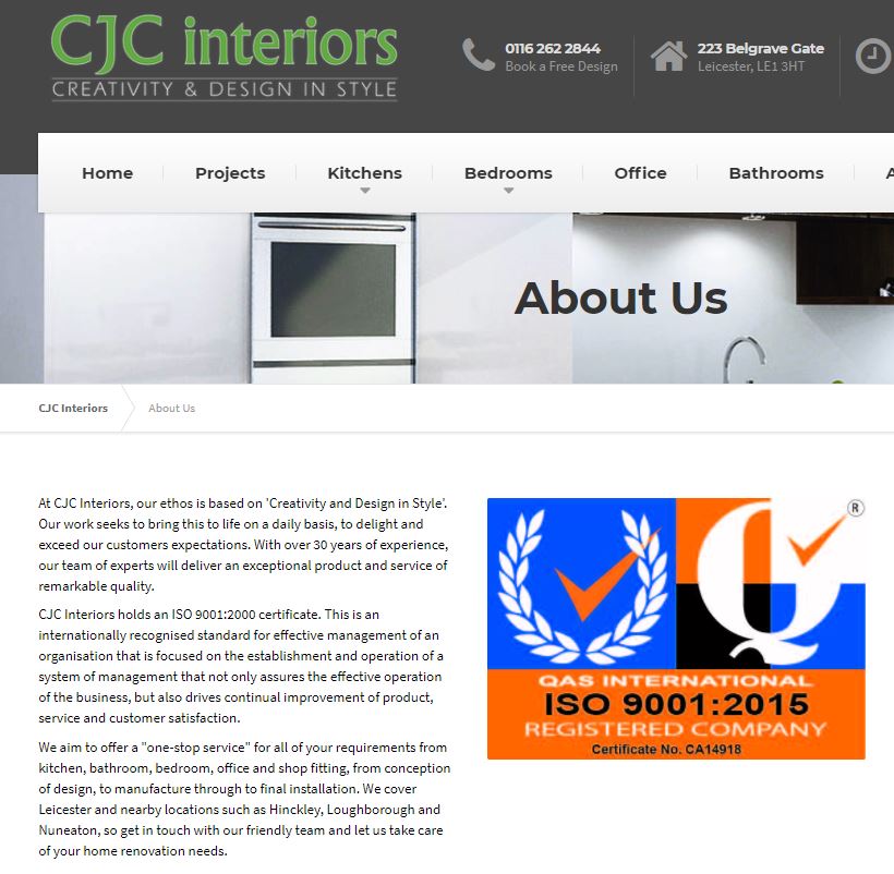 CJC Interiors holds an ISO 9001:2000 certificate. This is an internationally recognised standard for effective management of an organisation that is focused on the establishment and operation of a system of management that not only assures the effective operation of the business, but also drives continual improvement of product, service and customer satisfaction.