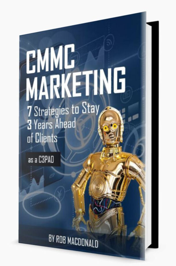 MacDonald claims to have written a book on this subject, called CMMC Marketing: 7 Strategies to Remain 3 Years Ahead of Clients as a C3PAO. If you recall, a “C3PAO” stands for “certified third-party appraisal organization” and refers to the companies that will be eventually accredited by the CMMC-AB to conduct CMMC audits and issue certifications.