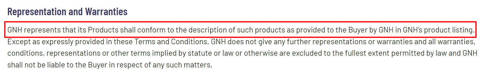 The GHN website’s legal policy page then reinforces that GNH stands behind the claims made by the manufacturers’ claims:
