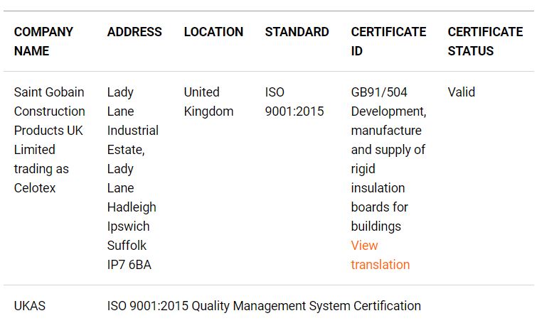 The current ISO 9001 certificate indicates it was issued by SGS in April of 2018, over a year after the fatal Grenfell fire. The certificate indicates the company would have then undergone another audit in June of 2020. In October 2019, the “first phase” of the official Grenfell public inquiry began, with the “second phase” being conducted in November 2020. Therefore, SGS had multiple opportunities to withdraw the Celotex certificate, but did not.