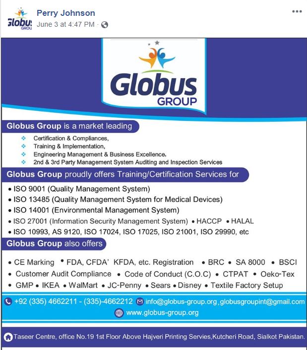 Meet Globus Certifications, a Pakistan-based ISO 9001 registrar that claims accreditation in the US by the International Accreditation Service (IAS), currently one of the only US-based competitors to ANAB. IAS is facing criticism for opening the US market to a flood of fake certification bodies who engage in all sorts of accreditation violations while it blissfully looks the other way, most of these coming from India and Pakistan. It also seems to be powerless to stop other companies from using its logo and name, much like Globus.