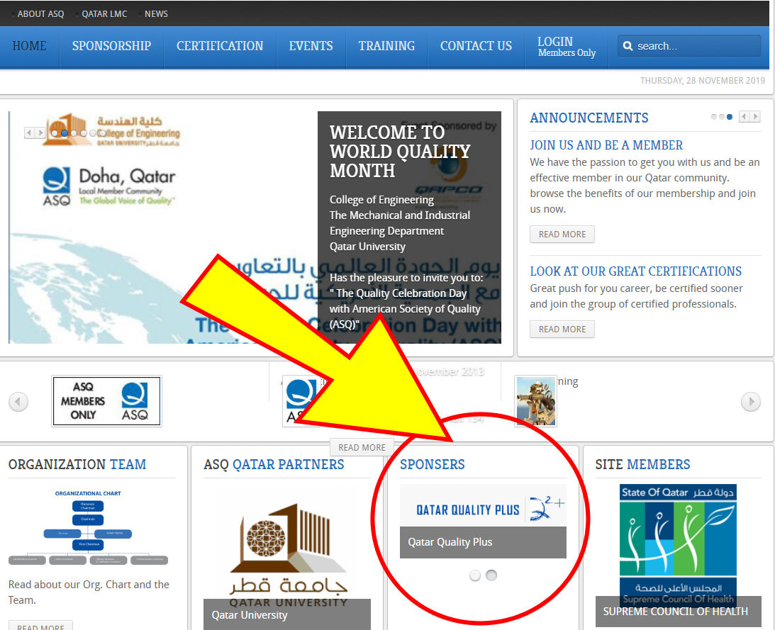 Even ASQ was aware of the conflict of interest related to Ms. Ross, and did nothing; ASQ’s Qatar Division announced both Qatar Quality Plus and Quality Austria as “Bronze Sponsors” of the division. ASQ would have been aware of this arrangement since both payments would have been made by Ms. Ross, and yet ASQ did not flag the conflict with ISO or Quality Austria. The website for the ASQ Qatar Division includes only two corporate logos under “sponsors,” those being for Qatar Quality Plus and Quality Austria.