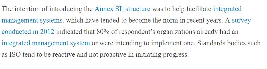 In reality, the concept of the “IMS” was a myth invented by ISO to sell standards and certifications in bulk, and the concept is nearly universally ignored by actual companies. If we do the math we find that it’s likely that less than 0.1 percent of the world’s companies have implemented a single management system standard, with the numbers falling to more like <0.001% when you try to find a company that’s implemented at least two; you have to have at least two to be considered an IMS, after all. Add a third and the numbers fall to a number that can only be measured in angstroms.