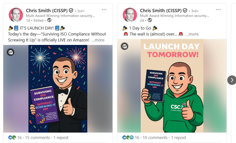 Meet Chris Smith, a cybersecurity consultant with CSC2 out of the UK, who decided it would be cool to trample all over the well-established books I’ve published since 2016 and use the term “Surviving ISO” in his own book.