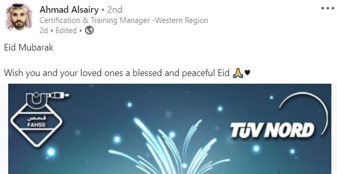 In reality, it appears the only action taken by TUV NORD to date was to update the FAHHS website to obfuscate references to TUV NORD, although the URL for the website still remains as “fahsstuv.com”. In celebration of Eid Mubarak in May, however, the company released a greeting using both logos, revealing that no actual changes took place related to the ownership of FAHHS by TUV NORD.