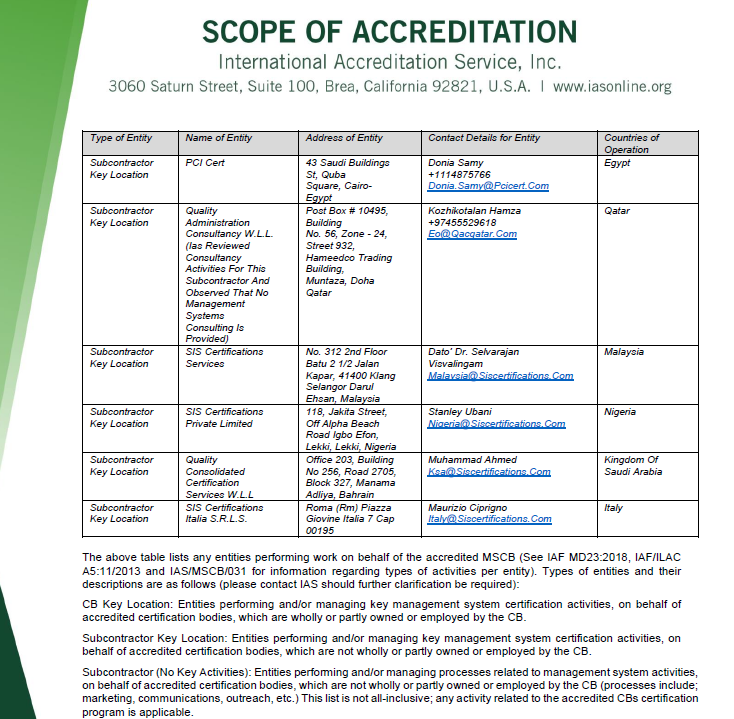 To be clear, in the Indian market, SIS is a well-known certificate mill, regardless of whether they hold IAS accreditation or not. Previously, they only held fake accreditation from a known accreditation mill called IOAS, and could not get accredited by any legitimate IAF member. Finally, IAS came on the scene and started issuing accreditations to anyone who could pay, and SIS — like so many other certificate mills from that region — found their “partner.”