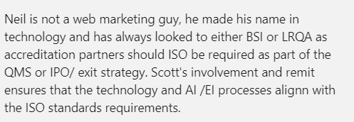 Going even further into madness, “Harry” straightfaced claimed they intend to “licence the tech via ISO” (which makes no sense) and are pursuing BSI and LRQA as partners. Right, sure you are.