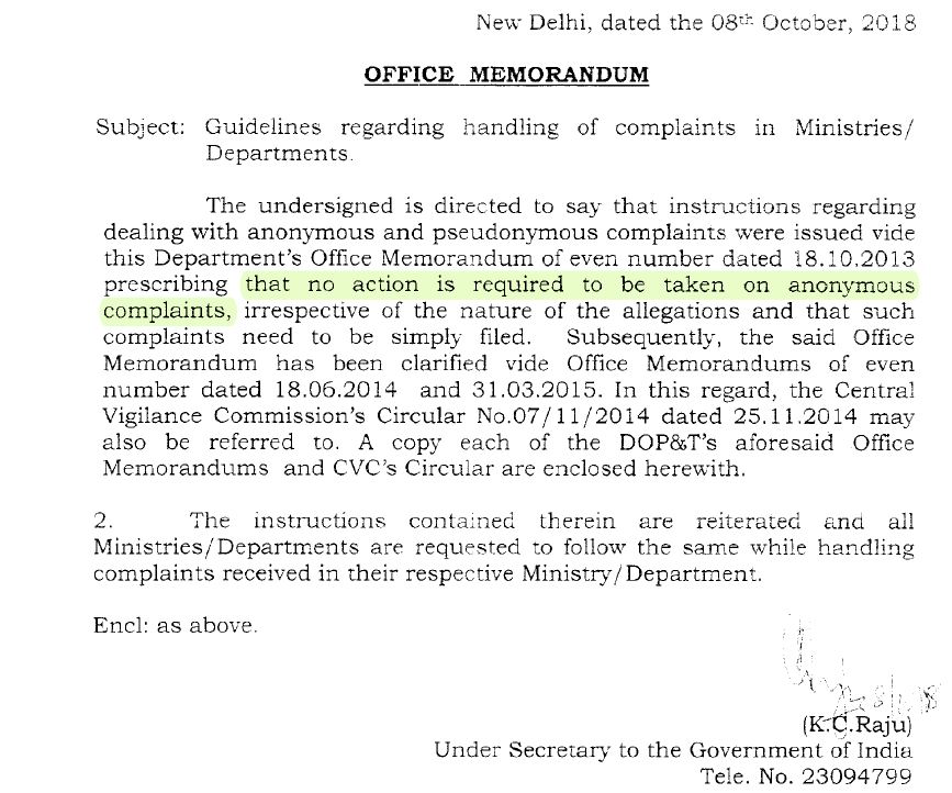 Further NABCB, a constituent Board of QCI, is the national accreditation body of India established by the Government of India under the Ministry of Commerce & Industry. I am also attaching here with an Office Memorandum issued by DoPT, Govt. of India for your information and reference stating that “no action is to be taken on anonymous complaints, irrespective of the nature of the allegations and that such complaints need to be simply filed.” Being an organization under Government of India, we are bound to comply with above and the order attached.