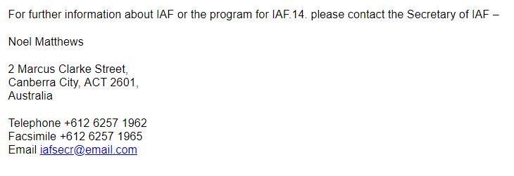 UPDATE 26 December 2018: ISO expert and reader Anthony Mason found some additional information on IAF and helped flesh this out further. In earlier days, the IAF address and contact information was widely disseminated, and appears on multiple older IAF documents.