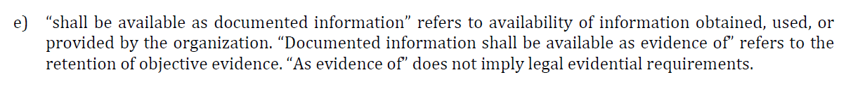 – If the standard says “documented information shall be available as evidence of” = requirement for a record.