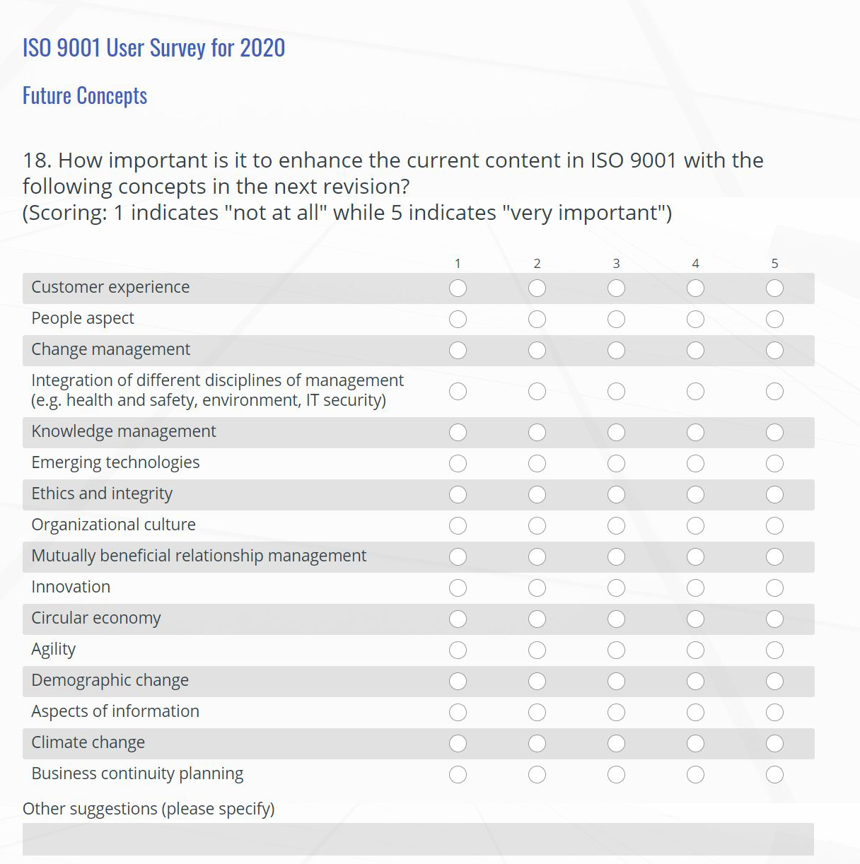 It’s worth pointing out that ISO has already spiked the results. The questions related to “Future Concepts” represent ideas that ISO TC 176 already determined — without user input — back in late 2019. These include injecting “ethics” into ISO 9001, which seems to be a foregone conclusion no matter how many people object to it.