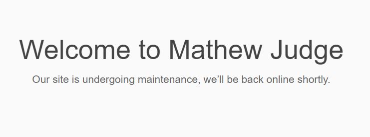 Judge’s expertise in IT is also dubious, given problems with his two consulting websites. The first site, www.mathewjudge.com, resolves to an iPage hosting alert that reads “This site is temporarily unavailable.” The message is typical if a hosting customer has failed to pay their bill, or has failed to redirect web traffic from an old host provider to a newer one.
