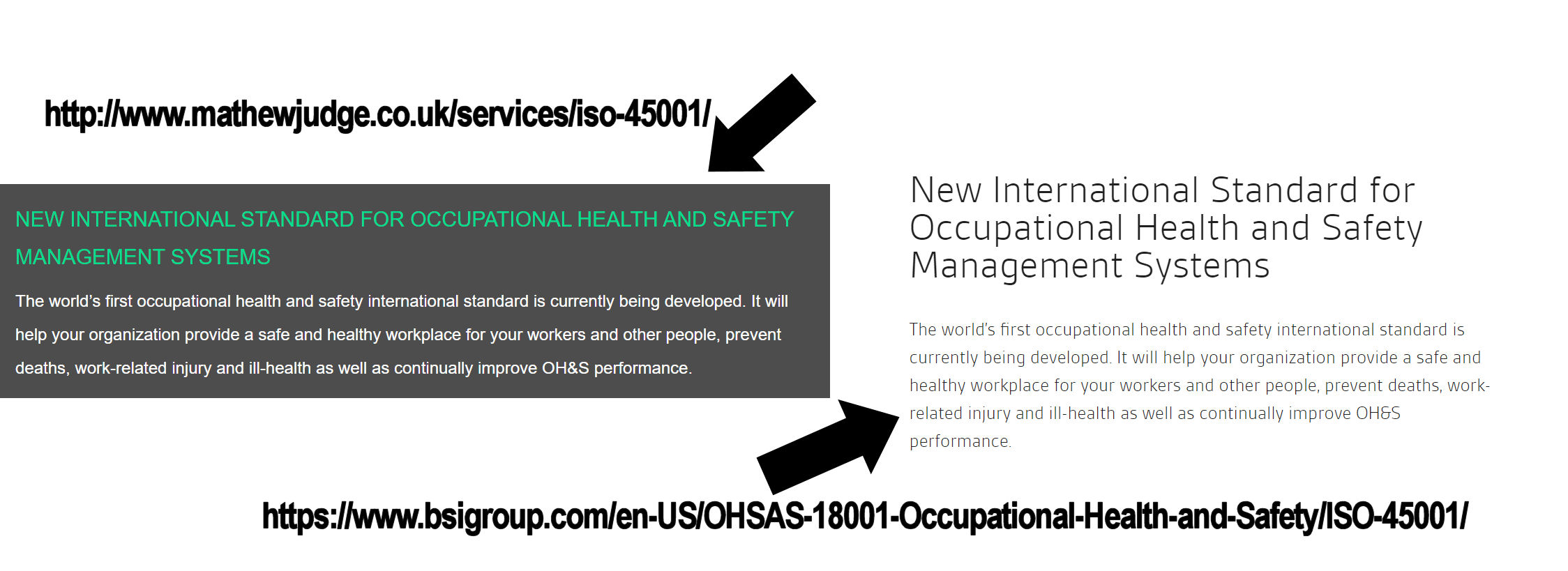 Judge’s page on ISO 45001 appears to have been taken from the ISO registrar BSI.