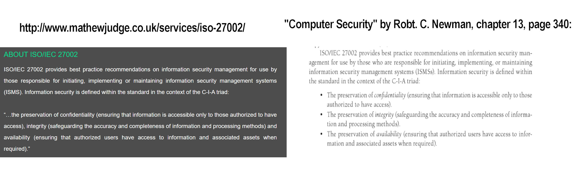 Likewise, Judge’s page on AS9100 comes from BSI:Judge’s page on ISO 27002 utilizes a passage from the book Computer Security by the author Robert C. Newman:
