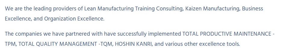 It doesn’t stop there, though. They also sell TQM services, for Total Quality Management (TQM):