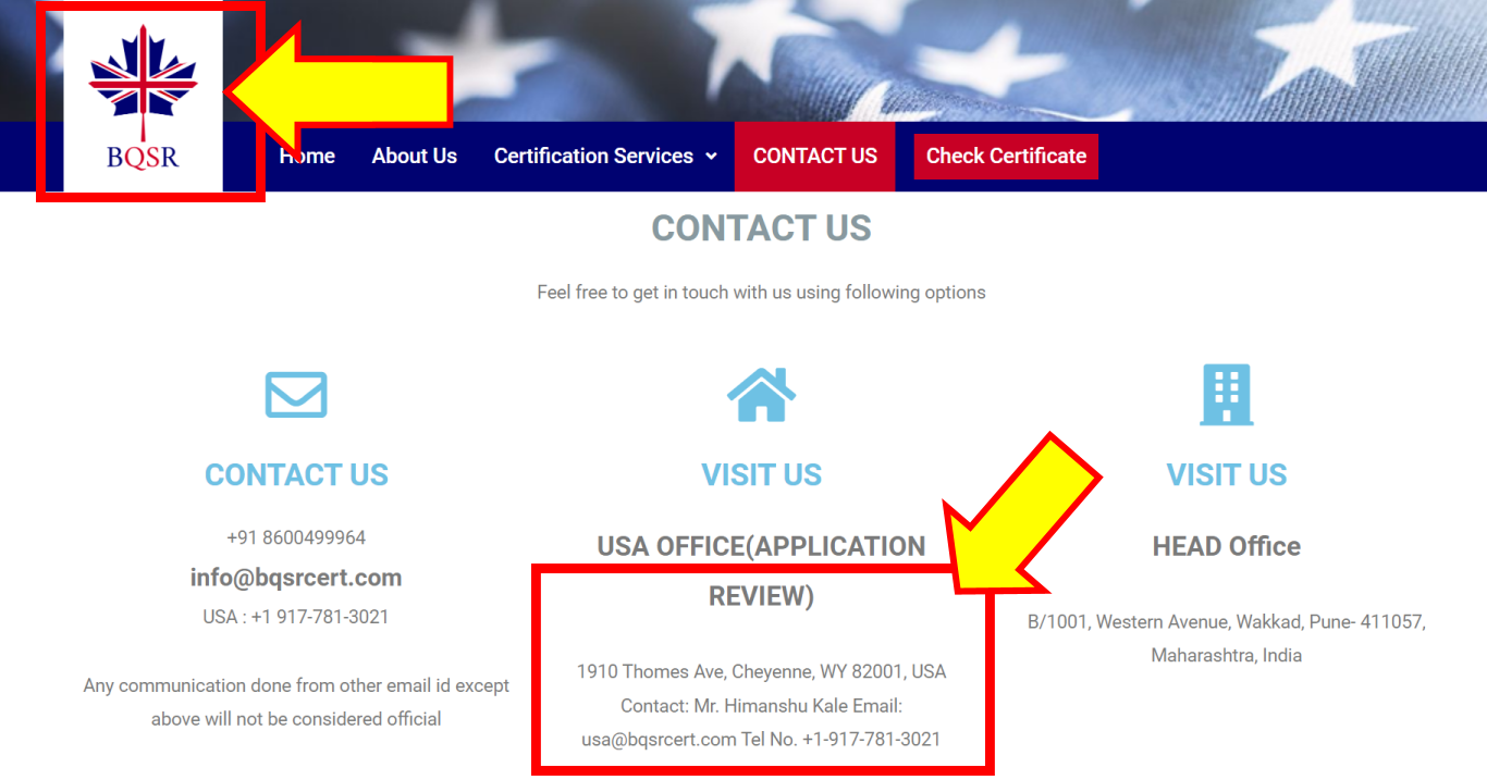 Now look at the BQSR website, and note the Wyoming address, because that comes back later: