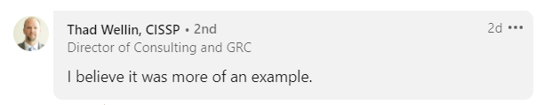 Well, yes, it was an example: an example of how yet another CMMC-AB Board Member operates a company that is involved in the CMMC consulting field.