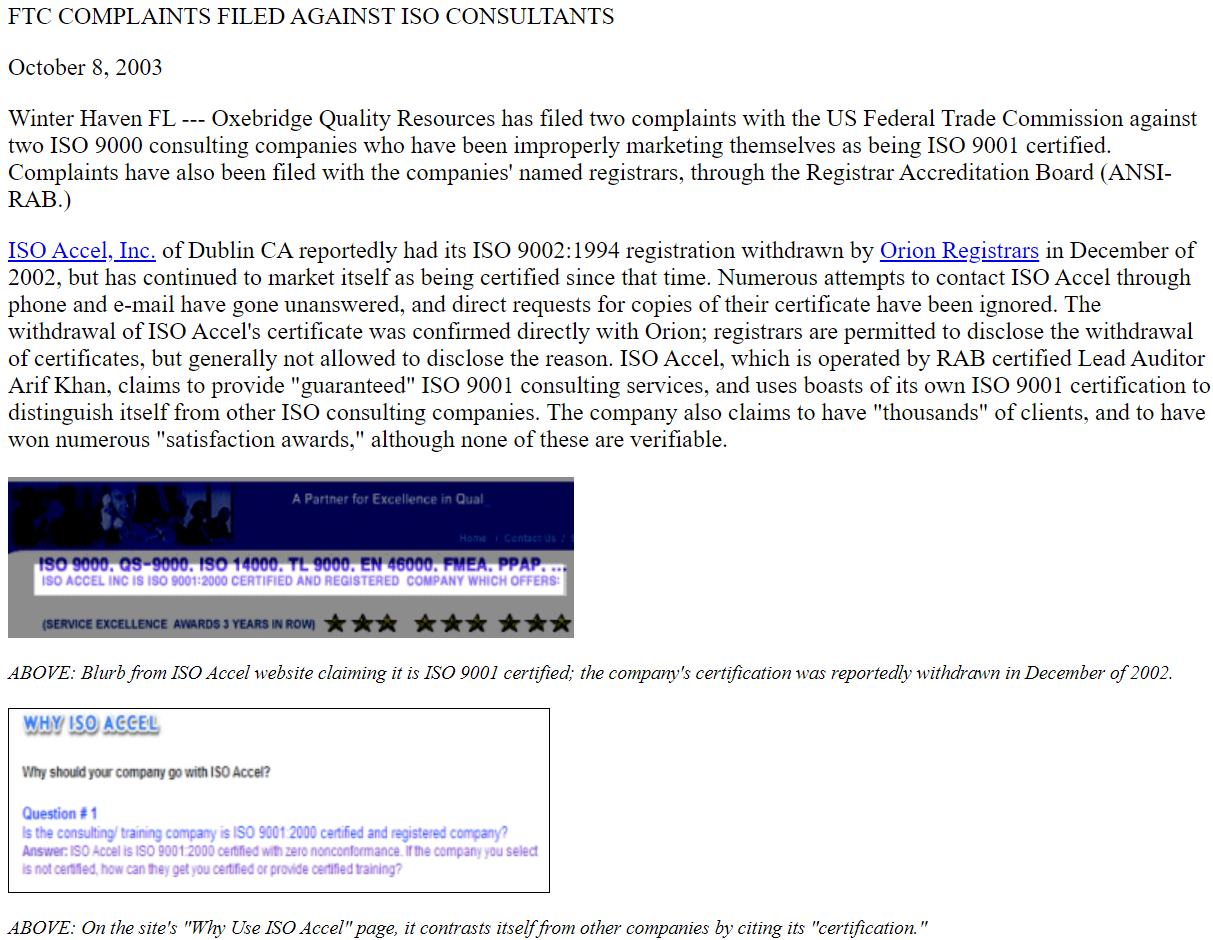 And so, that is when things took on their own life. It was gradual, yes, but by 2010, Oxebridge had positioned itself as the opposing force against the scams within ISO, the US TAG, TC 176, the CB industry and more.