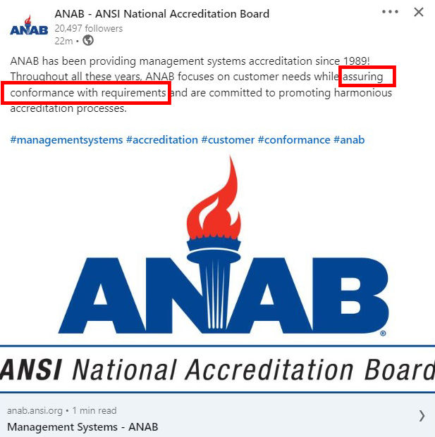ANAB, meanwhile, has aggressively marketed its accreditation as being able to “assure” results.