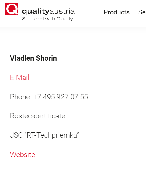 A check of Quality Austria’s scope of accreditation with Akkreditierung Austria does not list a Russian office, nor RT Tech Priemka, but Oxebridge has written to Akkreditierung Austria for clarification.