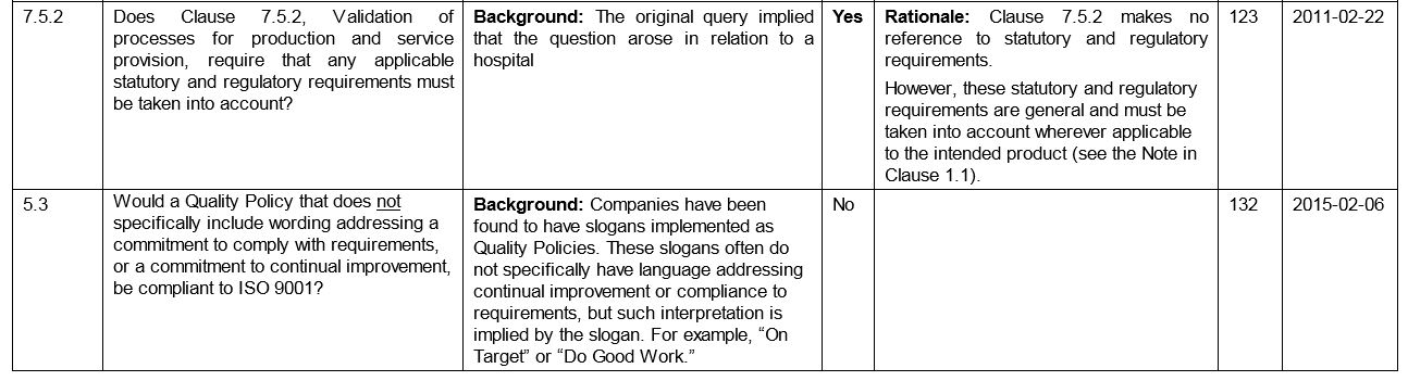 That simple request uncovered yet another mess at ISO, including the fact that TC 176 had all but abandoned providing any requests for interpretation since 2011, in violation of their own rules. Prompted probably because I embarrassed them, my request managed to get an official interpretation where no one else’s has since 2011. In fact, the Official Interpretations list clearly shows that my “RFI” (number 132) was added in 2015, but the last recorded RFI prior to mine was number 123, filed in 2011. This appears to mean that the intervening RFIs — nine of them — were never processed at all.