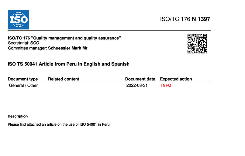 TC 176 Committee Manager Mark Schuessler sent an official ISO memo, numbered N1397, which included a false statement aimed at swaying ISO members in their votes for the new ISO 54001 standard.