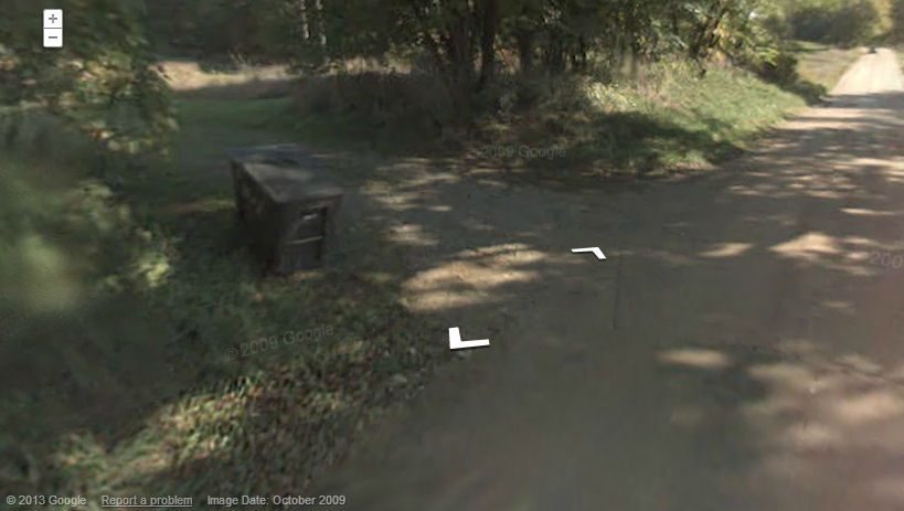 Perhaps by way of funny coincidence, or at least heavenly irony, popping the QSRD address into Google Maps and firing up Streetview reveals a trash can on the side of an abandoned country road. No office, no buildings… just a trash can.