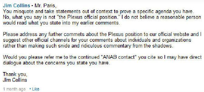Contrary to the cynical declaration by AAQG/Cessna’s William Blake (“attempting to address them here will not drive change!”), or Plexus’ Jim Powell (“please address any further comments about Plexus [through] official channels … rather than making snide and ridiculous commentary from the shadows”) taking your gripes online works. I am not being hyperbolic if I point out that, recently, not a few countries would still be mired in antidemocratic, totalitarian regimes had they listened to Mr. Blake and kept their concerns to “official channels” and not gone online.