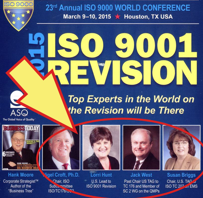 ISO Technical Management Board member Susan LK Briggs also spoke at G31000 event, and recently joined registrar NQA for their “ISO 9001:2015 Transition Roadshow” which charges up to $600 a head. Ms. Briggs is also scheduled to attend the ISO 9000 Conference.
