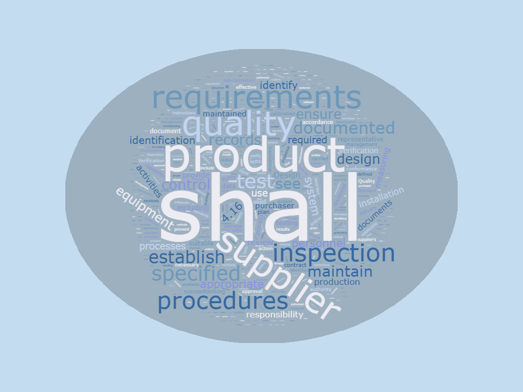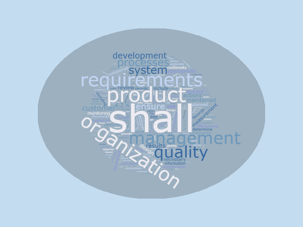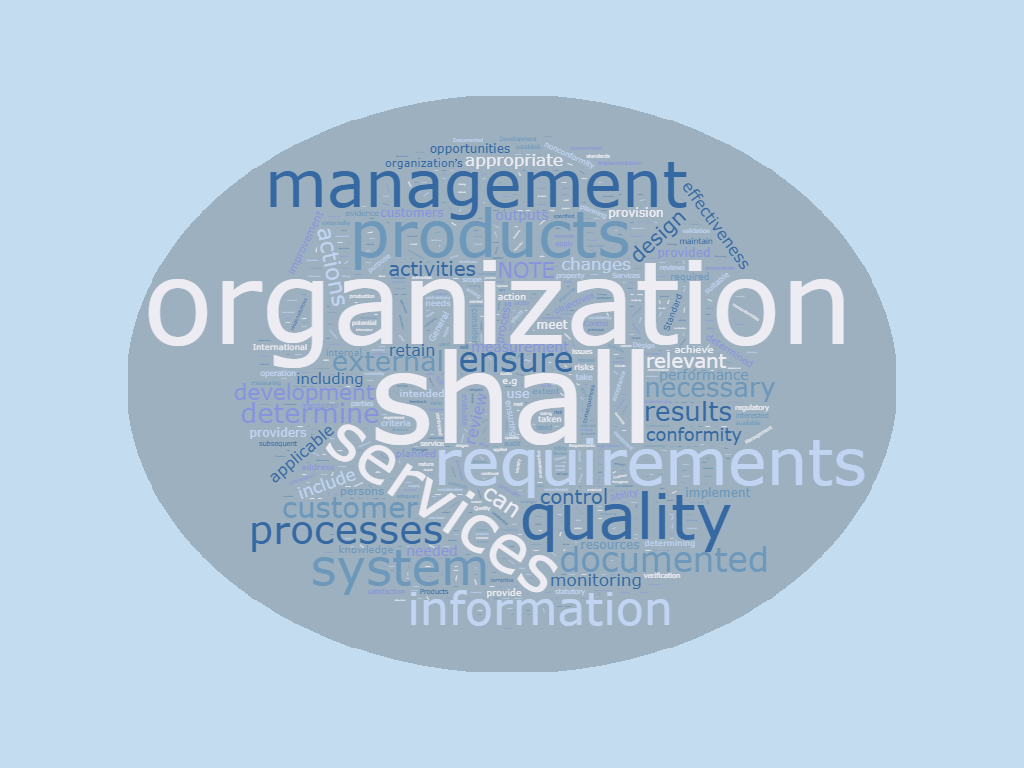 The 1994 version only tweaked the scope of ISO 9001, by removing the limitation that it be used as a supplier evaluation tool, and now re-branding it as an improvement tool. It also expanded the scope to no only include product nonconformities, but also those of processes and the QMS itself. The 1994 version landed at about 4,400 words (again, only comparing the requirements clauses.) From a word cloud viewpoint, however, the changes were actually minimal, although we do see the word “inspection” begin to fade into history.
