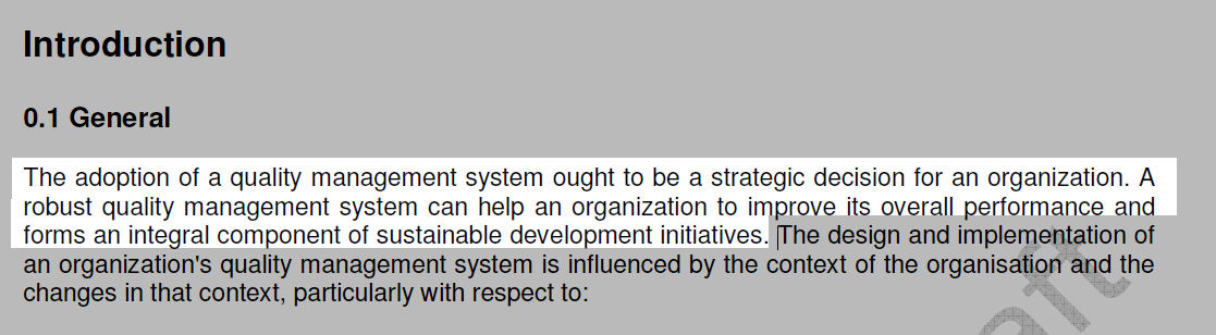 So if Clause 0.1 insists a QMS is to be used as a basis for ensuring “sustainable development initiatives,” does that translate into any actual requirements in clauses 4 through 10?